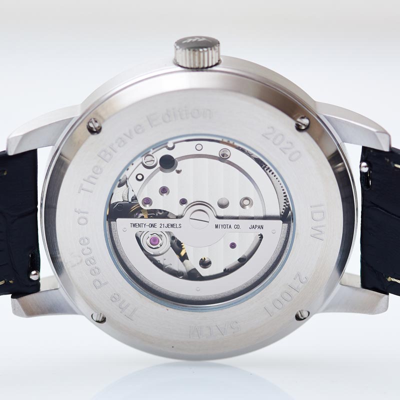 Individually numbered exhibition caseback showing inner workings in a mix of brushed and polished steel